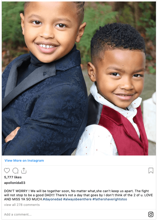 According to the dad, his ex-wife is restricting his parental rights — he shared his struggles in a heartbreaking Instagram post on August 11, “DON’T WORRY ! We will be together soon, No matter what, she can’t keep us apart. The fight will not stop to be a good DAD!!! There’s not a day that goes by I don’t think of the 2 of u. LOVE AND MISS YA SO MUCH.” The father of two concluded his caption with the hash tags, “#dayonedad #alwaysbeenthere #fathershaverightstoo.”