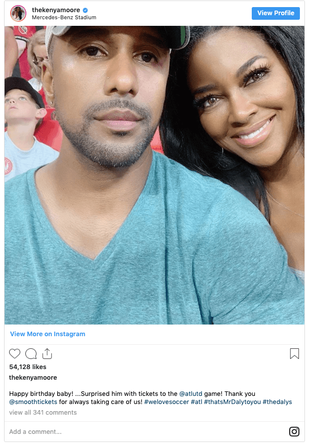 The returning Real Housewives of Atlanta star surprised her husband with tickets to a soccer game between Atlanta United FC and NYC FC at Atlanta’s Mercedes-Benz Stadium on August 11. “Happy birthday baby! …Surprised him with tickets to the @atlutd game! Thank you @smoothtickets for always taking care of us! #welovesoccer #atl #thatsMrDalytoyou #thedalys,” Kenya captioned her Instagram post.