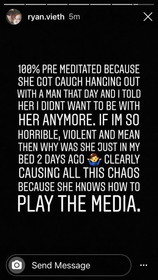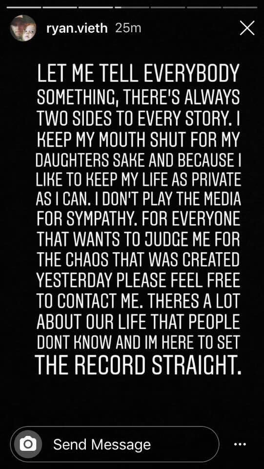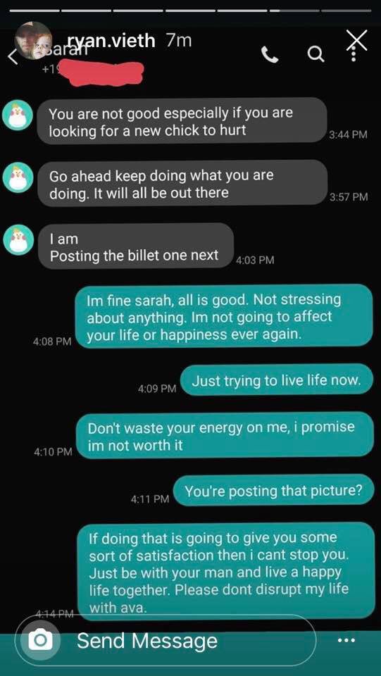 Ryan took to Instagram to speak out, revealing snippets of the seemingly twisted relationship he shares with Sarah Rodriguez.