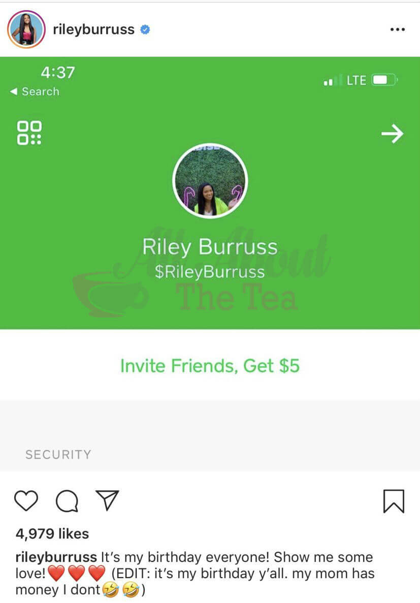 On August 22, The Real Housewives of Atlanta personality celebrated her 17th birthday and took to Instagram to beg her 692K followers to CashApp her money. “It’s my birthday everyone! Show me some love! ♥♥♥ (EDIT: It’s my birthday y’all. my mom has money I dont ??),” Riley wrote in her caption.