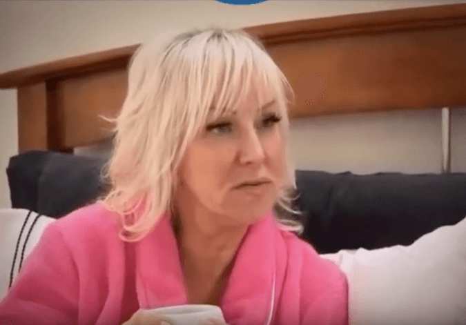 We begin this episode of the The Real Housewives of New Jersey with Jennifer Ayden’s boys scaling the side of her Paramus mansion. Jackie Goldschneider drives her kids around town while they tell her dirty jokes. And Dolores Catania needs her ex-husband, Frank’s, help to squeeze into a waist trainer. She lies on the bed as he zips her up, because that’s what good ex-husbands in NJ do.