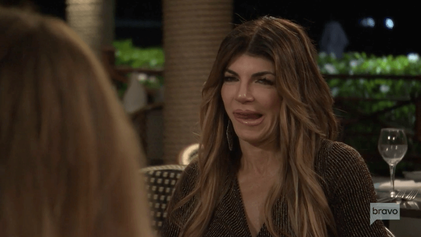 Once again, Jackie Goldschneider offers Teresa an olive branch. They should both stop saying hurtful things about each other. Teresa agrees, but she practically rolls her eyes as Jackie speaks. How many times are we going to have to endure Teresa holding onto anger over one comment that Jackie uttered a year ago? How long?!