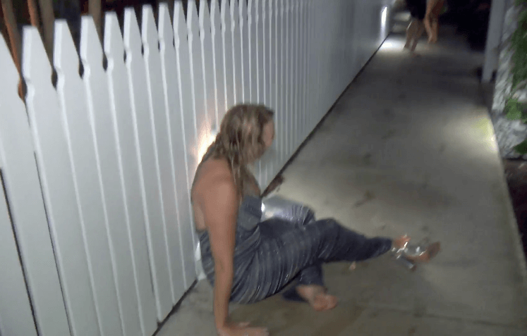 When they hear security coming, they make a quick run for their villa. Unfortunately, Vicki takes a tumble and hurts her leg. We’re treated to all the falls Vicki has taken over the years. But this one is serious. They call an ambulance and carry her off to the hospital.