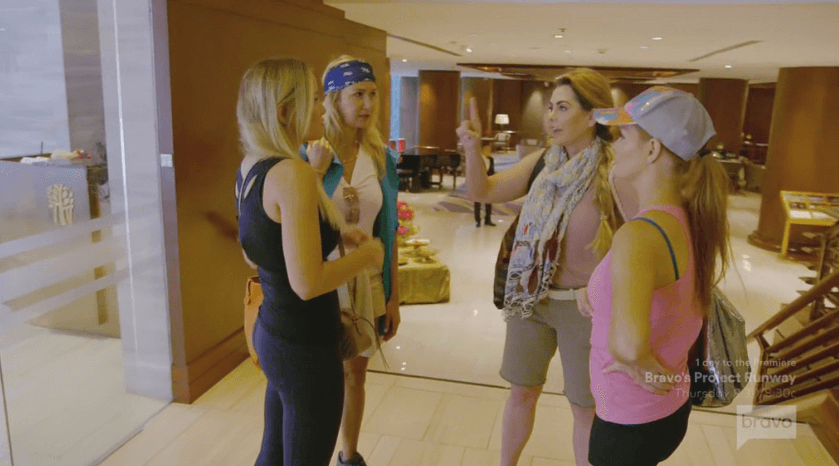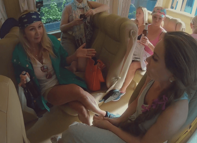 Once the ladies are all in the van, Kary Brittingham tries to explain her behavior the previous night to LeeAnne Locken and says that her comments about the dress were only meant to be funny and not rude. LeeAnne tries to draw a comparison to Kary’s jewelry asking her how she would feel if she referred to it as anal beads. OH WAIT. LeeAnne seems to receive Kary’s explanation and it appears the L’Infinitygate drama is on pause for now at least.