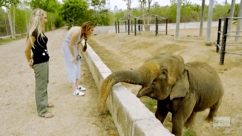 The guide at the sanctuary allows the ladies to feed the elephants and pet them. All of the ladies appear to get somewhat emotional when learning about the hardships the elephants have endured but LeeAnne Locken seems to be the most affected. Later, in her talking head, she admits to feeling as though she can relate to the elephants explaining that at three years old she was put on the carnival and told to “perform.”