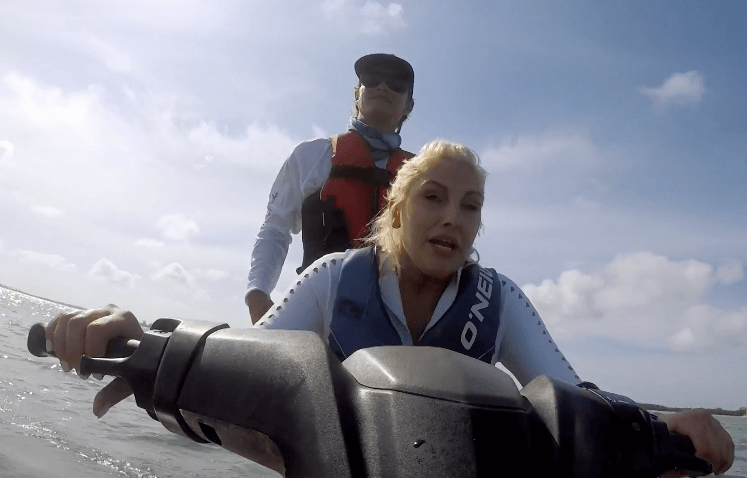 Gina Kerschenheiter, Kelly, and Braunwyn plan to spend the afternoon jet skiing. Gina and Kelly inadvertently wear the same swimsuit. But Kelly’s boobs win the “who wore it best” contest. Emily is a jet ski pro because she used to date a drug dealer who had a stable full of them. Gina, on the other hand, barely puttered through the water.