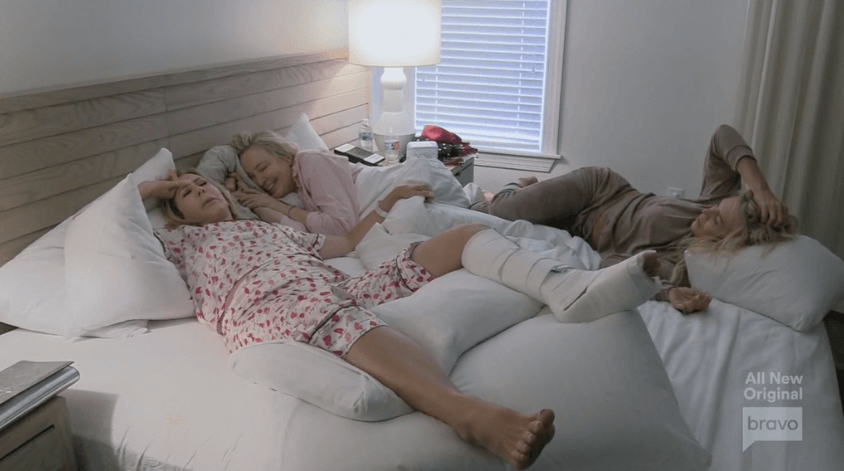 The next morning, we find Vicki Gunvalson lying in bed with a bandaged knee. That’s what happens when drunken skinny dipping is involved. But at least Vicki got out of going to Ernest Hemingway’s house, because she’s not a fan. Well, technically, she didn’t really know who he was to begin with, so no big loss.