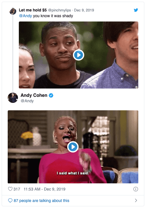 Andy Cohen addressed the situation on Twitter by replying to a fan’s tweet with a meme of none other than the reality star herself.