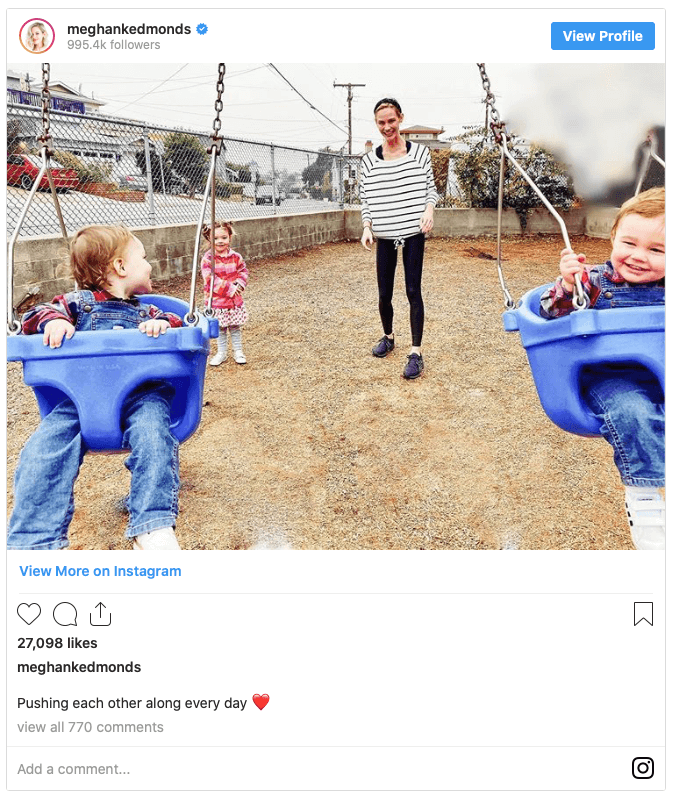 The drama started on Friday, when Meghan Edmonds, 35, shared a photo on Instagram showing herself at the park with her kids, playing on a swing set. “Pushing each other along every day,” she captioned the photo.