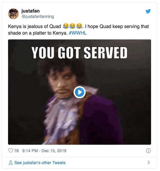 Fans quickly noticed Kenya Moore’s nasty deposition during the segment, Andy Cohen even read a tweet asking why Kenya shaded Quad, she responded: “History… She has a little bit of shady history towards me,” before the dialogue about their shady past became, well, even shadier. You can check it out, above.