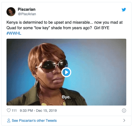 Twitter Drags ‘Miserable’ Kenya Moore For Shading Quad Webb On WWHL!