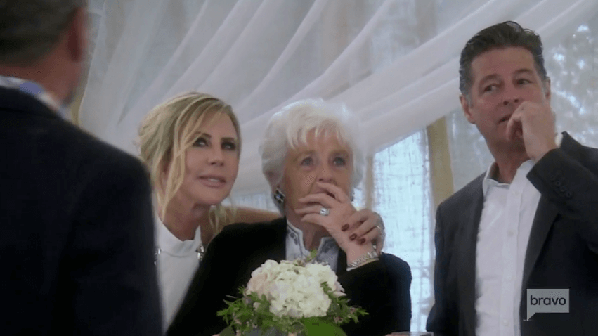 Vicki Gunvalson and Tamra Judge arrive early to the venue. They’re hoping that the third wedding will be the one that sticks for Vicki. Vicki’s brother, Billy, makes his yearly appearance. Braunwyn and Sean waltz in, and behind them is Dr. Deb.
