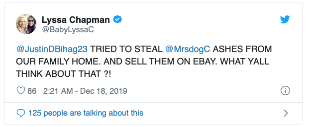 Lysaa Chapman claims Justin Bihag wanted to sell Beth Chapman’s ashes on EBay.