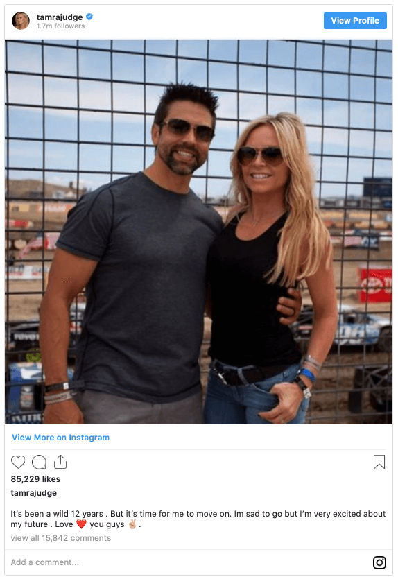 “It’s been a wild 12 years. But it’s time for me to move on. Im sad to go but I’m very excited about my future . Love ❤️ you guys ✌?,” Tamra Judge shared on Instagram.