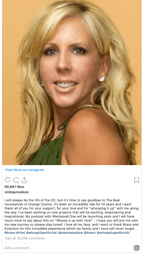 She concluded the post by thanking her fans, as well as Real Housewives of Orange County’s network and production company.