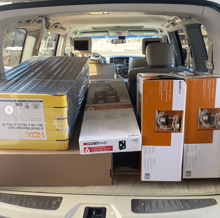 In a second photo shared by Christine Brown, the back of her car was loaded with various DIY organization items to tackle her project.