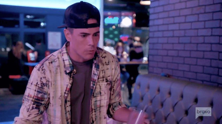 Over at TomTom, Tom Schwartz and Tom Sandoval are working on flower arrangements for all of the tables in their bar. Sandoval immediately gets down to being the Messy Boots that he is and tells James he heard about Raquel getting written up for missing her shift at SUR. The conversation eventually turns to the pastor drama and Sandoval seems to have the same opinion as Ariana stating that there’s no way Jax and Brittany could have been unaware of the homophobic comments. Uh oh. The echo chamber of negativity appears to be rearing it’s ugly head yet again…