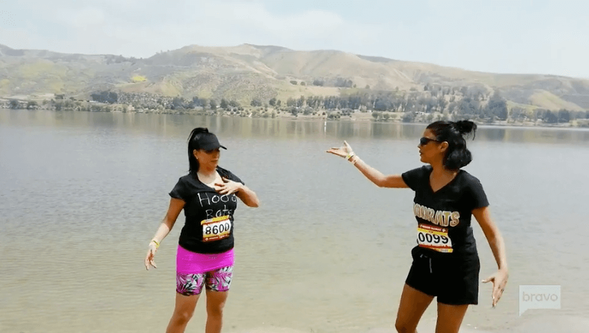 At the race, the Shahs take off as Mike Shouhed and Sara stand on the sideline and watch. Destiney and GG are the laggers. GG’s wondering how they can cheat. The girls dip their hands in the dirty lake water and splash their faces to make it look like they’re sweating. Then they wait for the others to turn around and catch up with them.