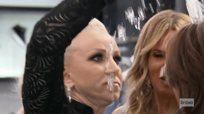“I think [it was] 100 percent wrong,” she says of Margaret’s decision to douse Danielle in water. “Let me go back to my fashion show when me and Teresa had our fight. When Teresa and I were fighting, I saw her keep going for her glass. No one’s going to throw a drink at me while I’m all made up before my fashion show. That’s the only reason why I left [the room]. I’m not afraid of her.”