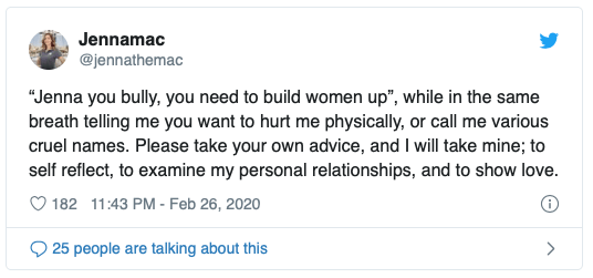 Jenna MacGillivray addressed her critics on Twitter, defending her actions.