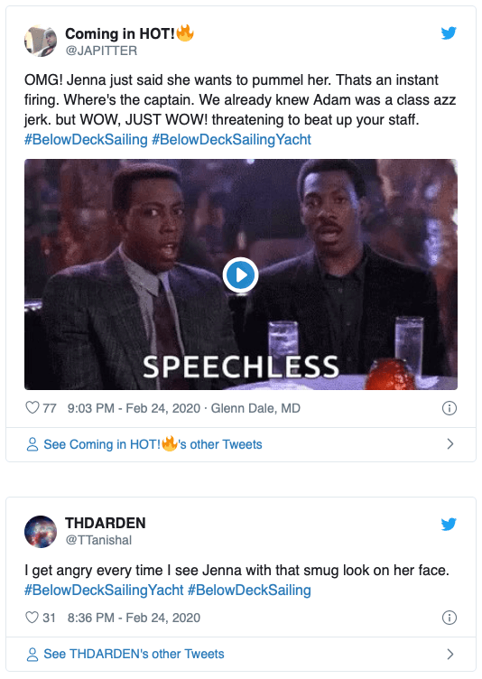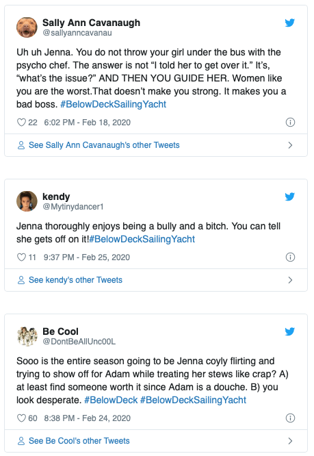 Jenna MacGillivray was filmed complaining about Georgia Grobler to yacht chef, Adam Glick, triggering even more viewers to sound off on Twitter. Read below.