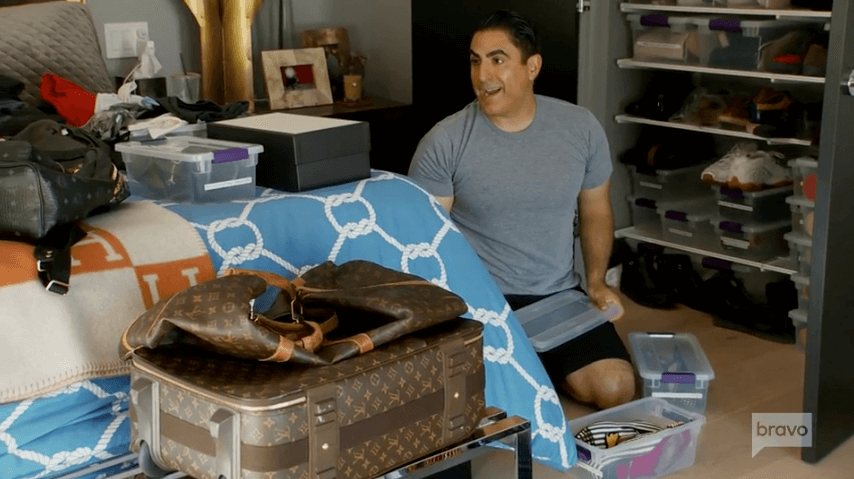 We begin this episode of Shahs of Sunset with Reza Farahan cleaning out his shoe closet. When Adam suggests they turn the garage into one big closet, Reza nixes the idea. He’s getting ready to launch his hair care line at Sally’s Beauty after investing half a million bucks, hoping the hair line will be a success. He and Adam are on their way to Vegas for the big debut.