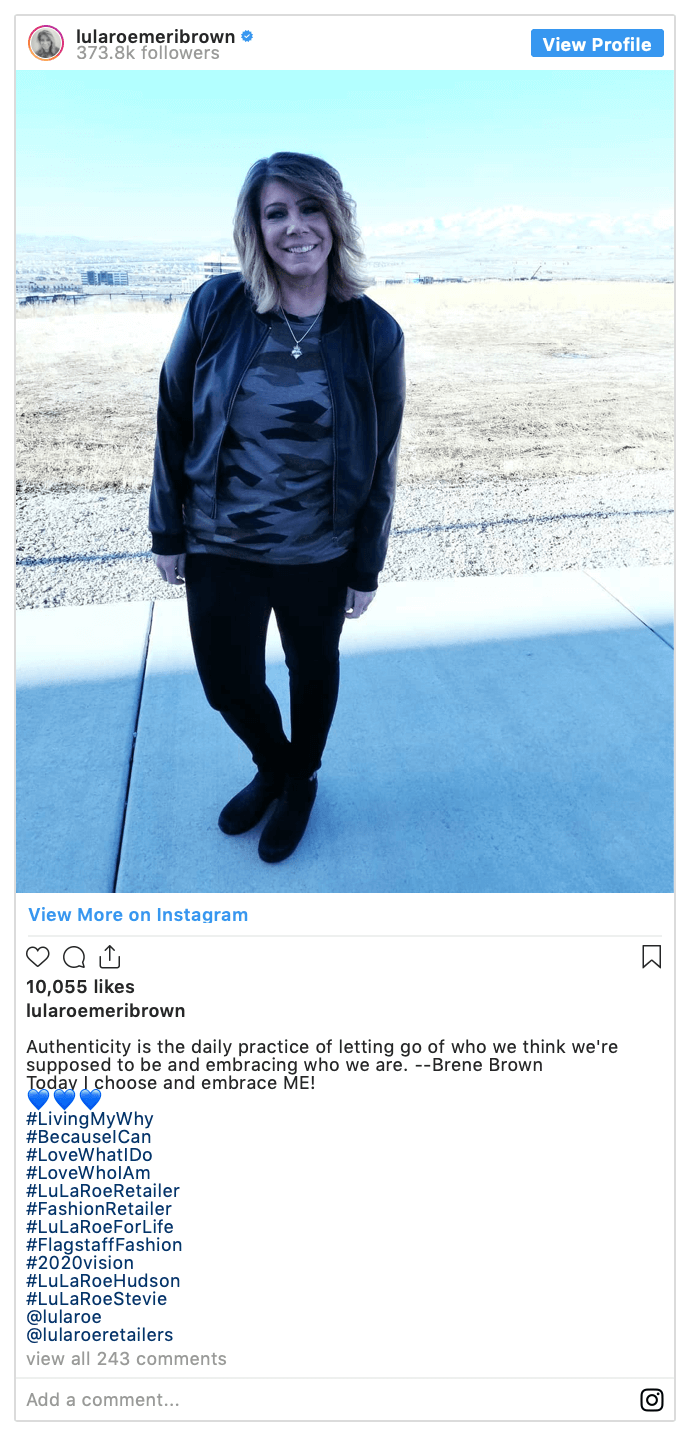 Sister Wives personality, Meri Brown, is living her best life on Instagram as a LuLaRoe clothing rep — but is she selling a make believe image?
