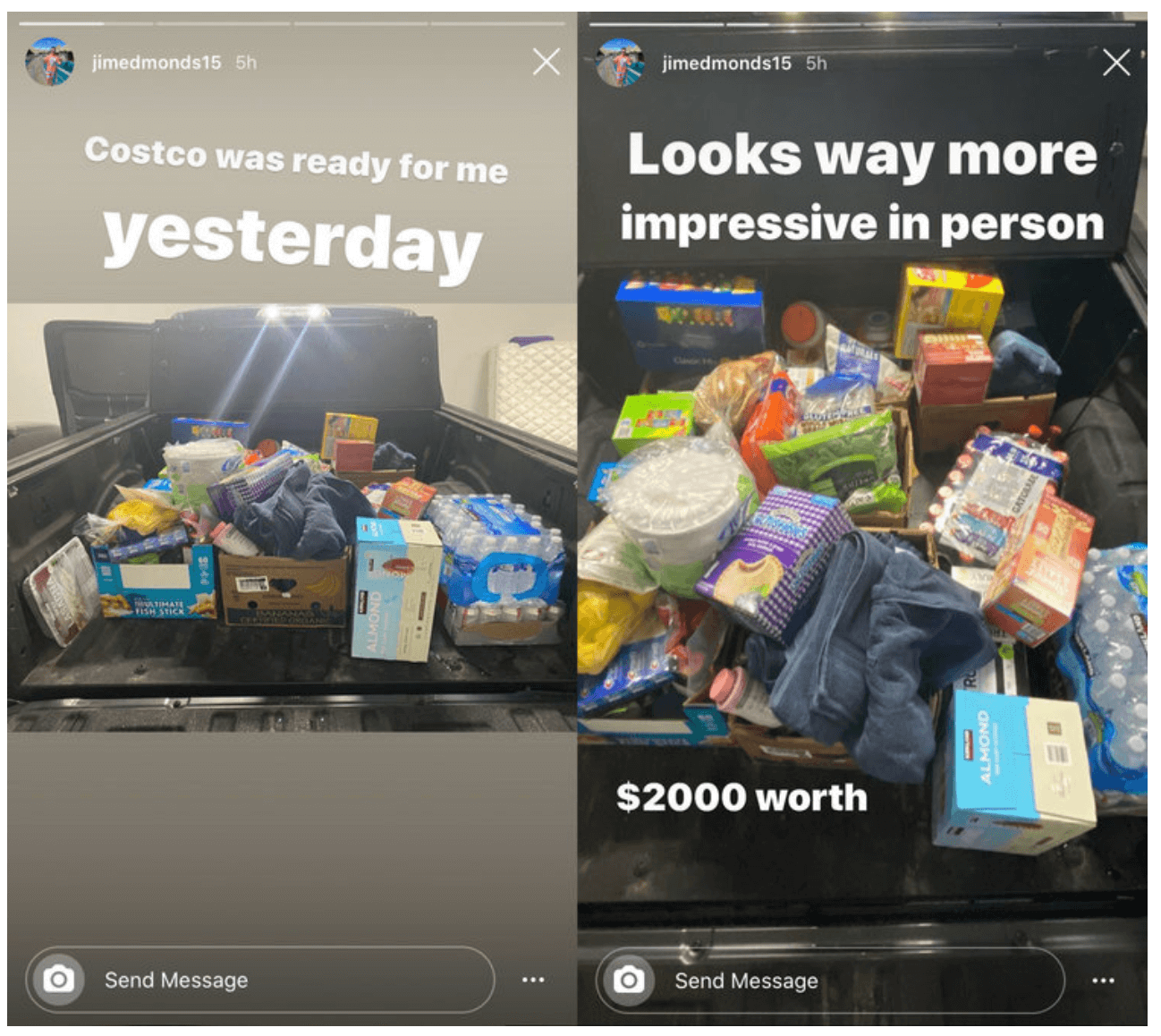 Meghan King Edmonds’ ex-husband posted photos of the back of his pickup truck filled with groceries. “Costco was ready for me yesterday,” he captioned the post.