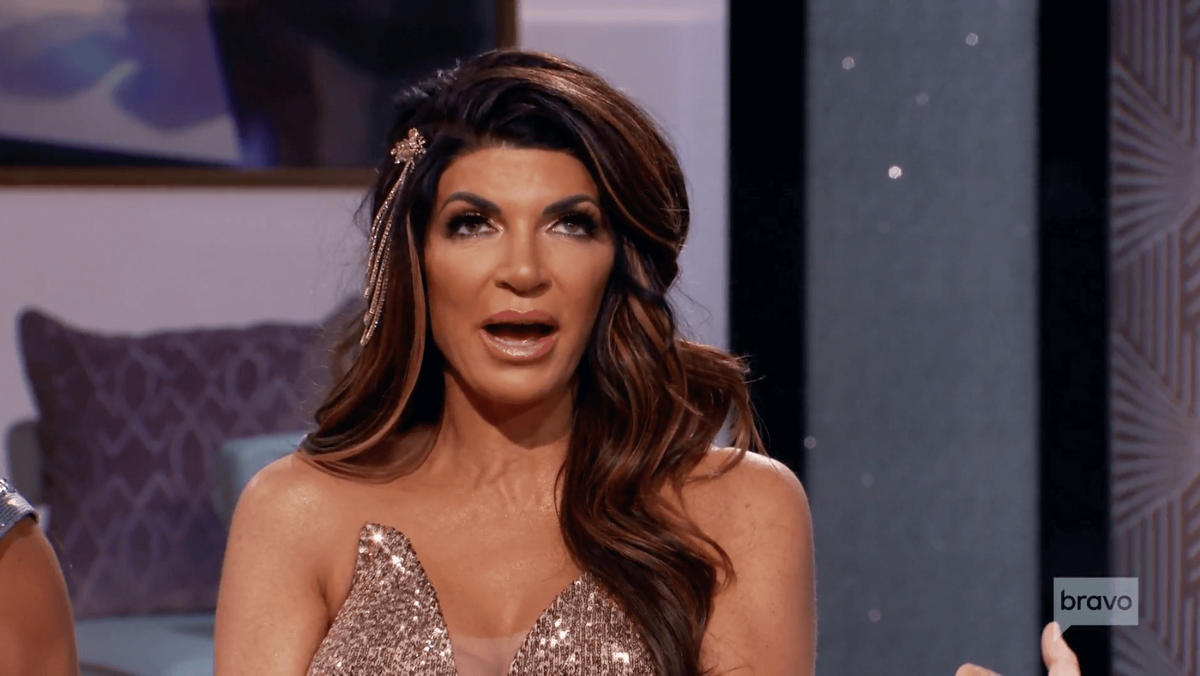 Teresa claims she didn’t see the hair pull at the boutique. But the flashback shows the truth. Teresa saw the whole damn thing. She stood there with her mouth open like a hungry carp. Teresa says she wouldn’t have stood up for Danielle if she’d actually witnessed the hair pull. Teresa is a liar and always has been.