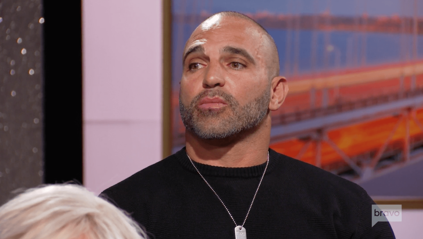 Teresa says Juicy hasn’t considered moving closer, say to Canada. And as they’re taping the reunion, he’s in Mexico on a fishing trip (remember all those photos we saw of Juicy surrounded by barely clad women?). Andy wonders where Joe got the money for the international trip. Teresa says he’s working, but she doesn’t know the details. She’s not keeping tabs on him. Joe Gorga rolls his eyes in disgust.