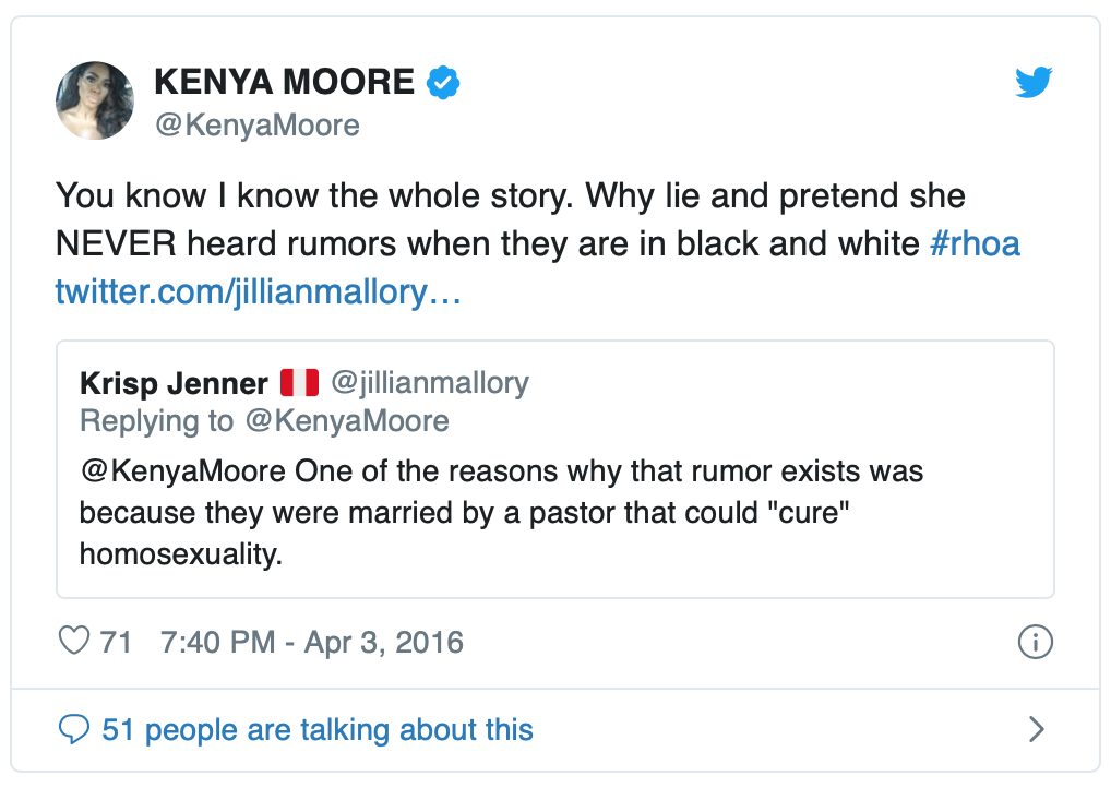 Kenya Moore continued to spread the rumor on social media and challenged people to just Google his name to read the rumors for themselves.