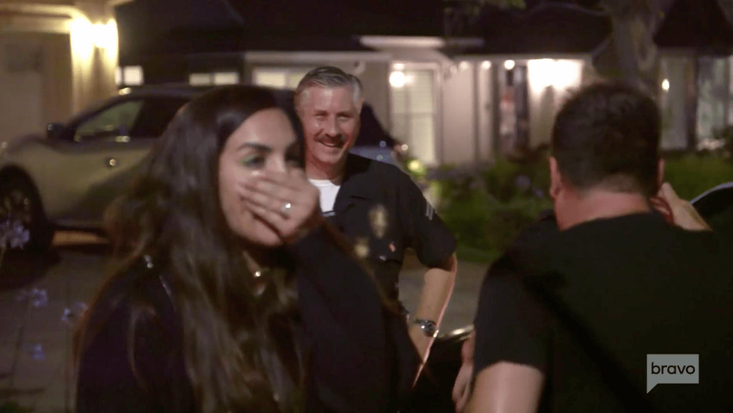 Randall Emmett pulls Jax aside and reveals his plan to repay Sandoval for the toilet paper prank as a gift to Jax for his birthday. His plan: he’s hired fake cops to arrest and charge Sandoval for “vandalism” at his house in front of everyone.