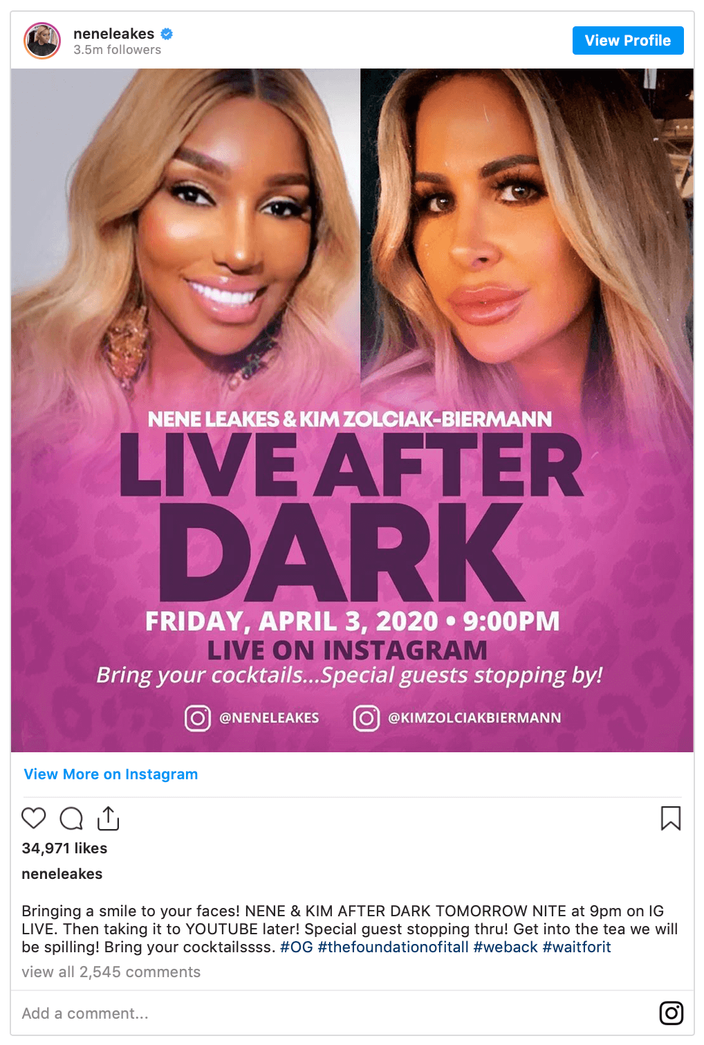 Catch NeNe Leakes and Kim LIVE on Instagram, Friday night, at 9:00 p.m. ET.