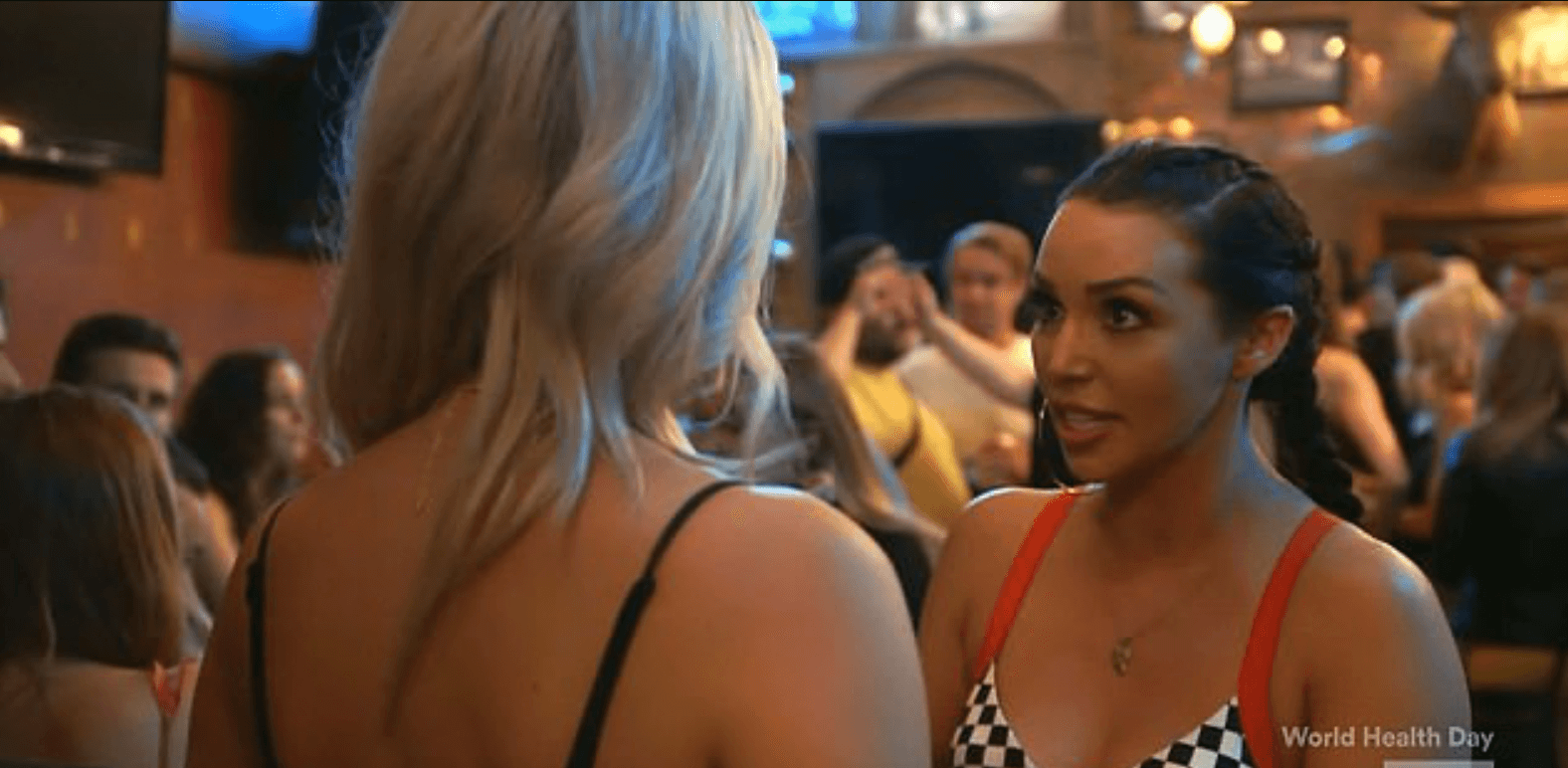Word gets around to the birthday girl, Dayna that Scheana went straight to Max about her new love connection with Brett. Lala Kent walks in and immediately throws gasoline on the flames by telling Dayna that she also heard that Scheana’s very upset. Dayna Kathan walks up and confronts Scheana. Scheana cops to calling Max and spilling the beans but is adamant that she only did so because Brett is supposed to be Max’s friend. Dayna shuts Scheana down explaining that “Max doesn’t get a vote.”