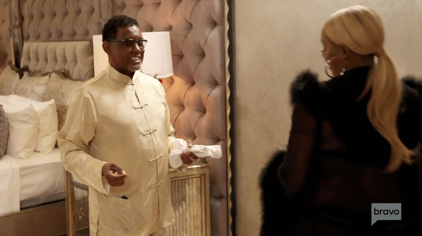 Kenya Moore reveals that she and Marc only communicate through their nanny and that he asked for his clothes but she was ultimately leaving it up to him as to whether or not he actually wants them shipped back to New York. Cynthia gently reminds Kenya that she can’t be the only one willing to try and make the marriage work.