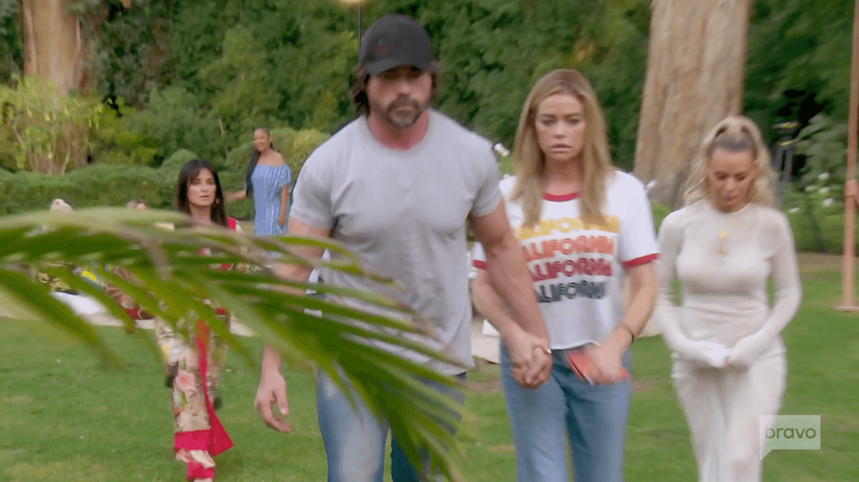 Cut to a dramatic caption that reads, “In December, Denise Richards stopped shooting with the group.” Then we’re treated to a montage of Denise storming out of various scenes and refusing to speak on camera. Presumably, this all stems from the alleged rumors circulating that she and former Beverly Hills Housewife, Brandi Glanville, carried on a sexual affair outside of her marriage with husband, Aaron Phypers. YIKES.