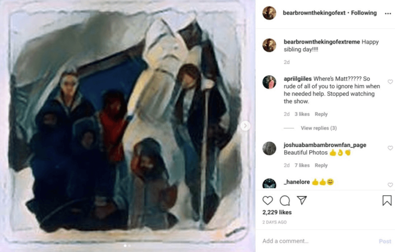 Alaskan Bush People star, Matt Brown, shared that he was enduring “hard times” after his siblings, Rain and Bear, shut him out of their brother/sister social media tributes.