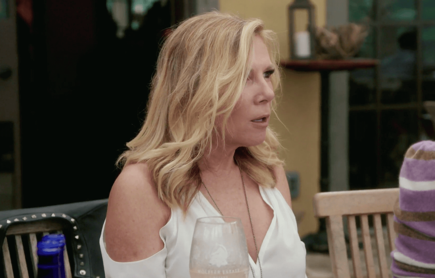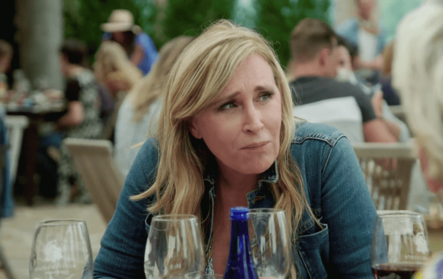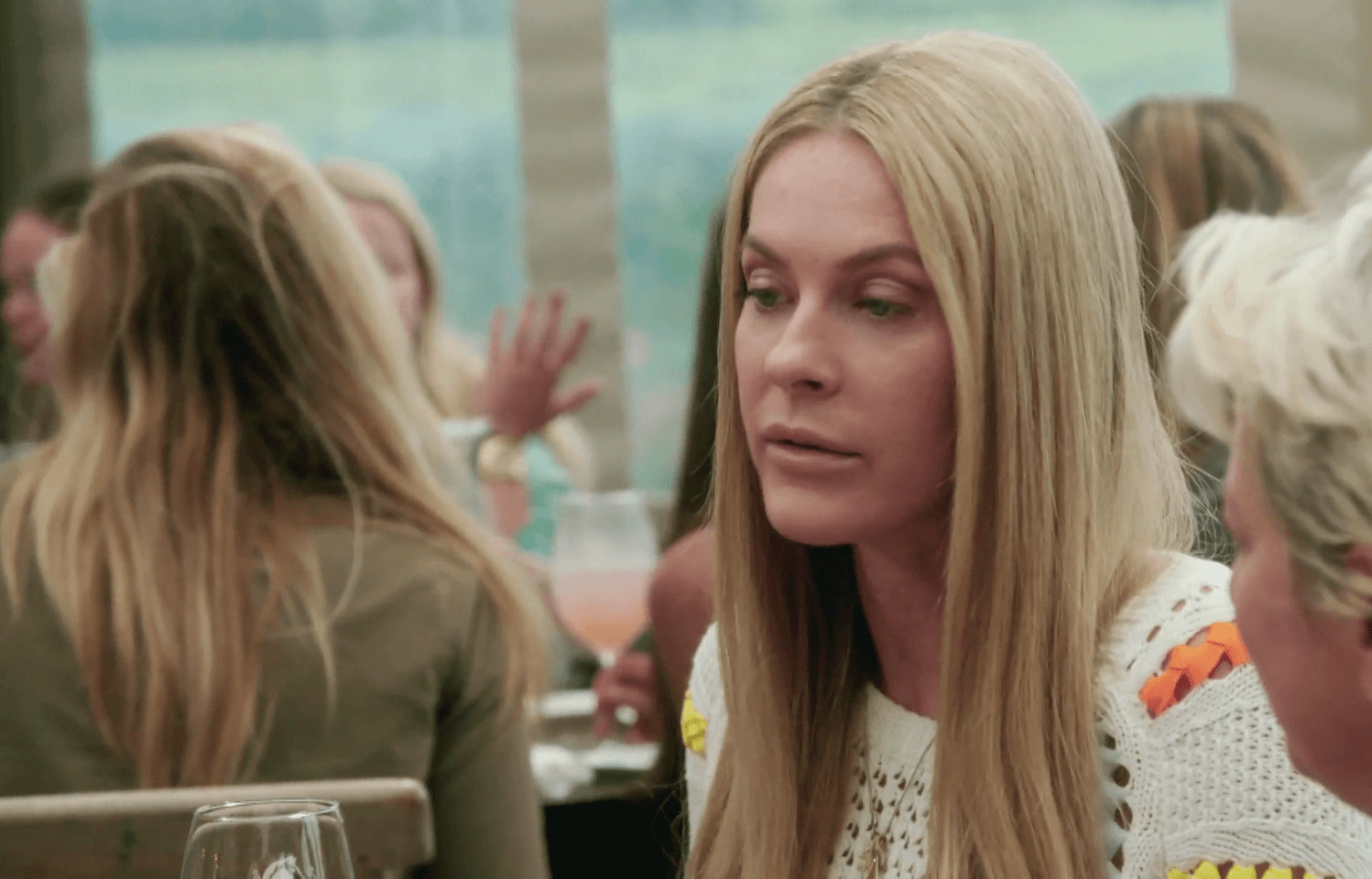 There’s a younger guy at the table, and Sonja claims he wants to sleep with her. He looks like he stepped out of a Ralph Lauren ad from the mid-nineties. But Sonja keeps eye fucking him like he might be interested. Because men love her vagina, you know. Well, now we all know, because she repeats it several times in front of everyone.