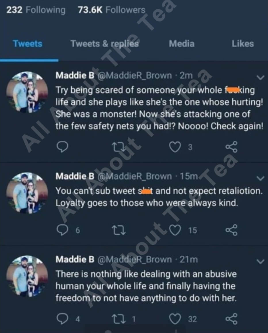 Maddie Brown Brush fired back in a series of now-deleted tweets — she wrote: