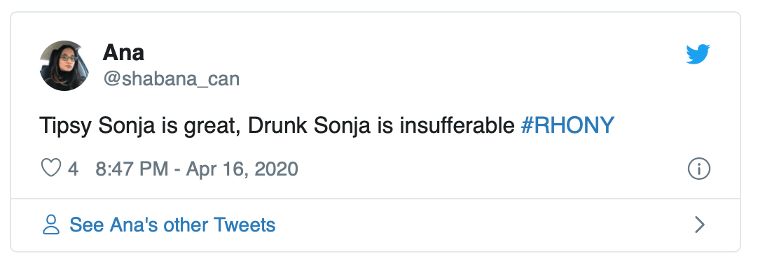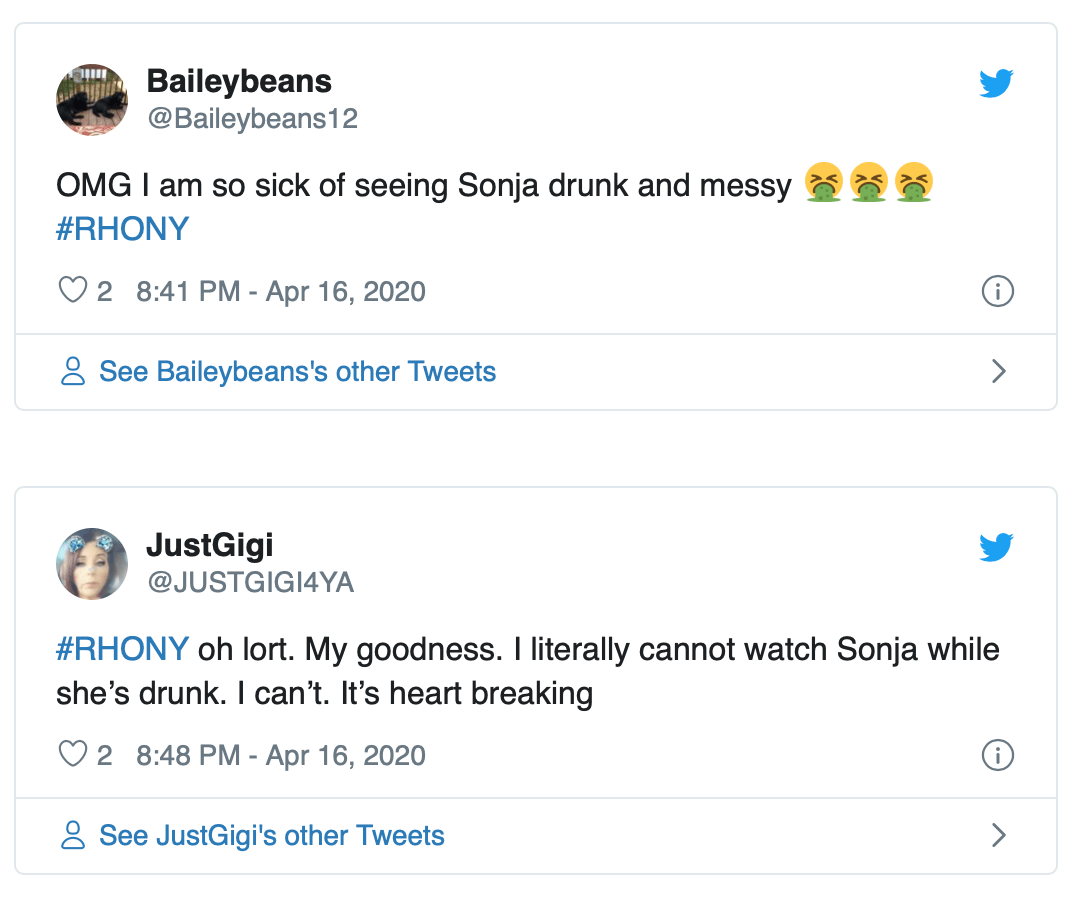 Sonja Morgan has always been the “straw that stirs the drink,” but the Real Housewives of New York City star took tipsy to a whole new level on Thursday’s episode.