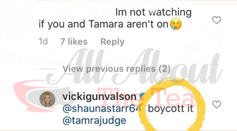 Bravo fans know that Vicki Gunvalson exited the Real Housewives of Orange County with her middle finger up. And when fans recently shared their disappointment over the OG’s departure  — Vicki Gunvalson suggested they “boycott” the show.