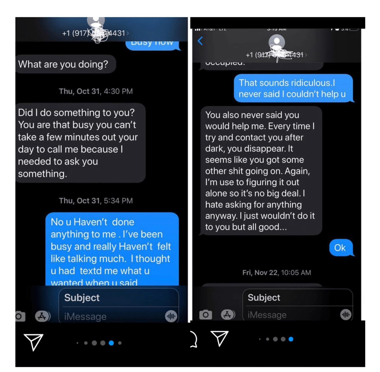 “She begged me to follow her back. In the past, i admit that I have just ghosted women without explanations and that’s left them very angry with me and wanting vengeance, but recently, since I’ve been seeing a counselor, I have tried to be better in how I end relationships with people.”