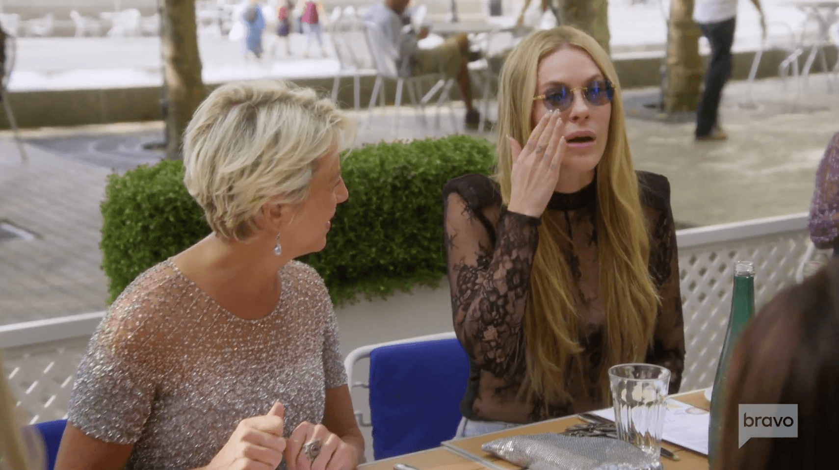 Sonja Morgan isn’t hungry. She’s in a panic and needs to leave. She’s having a model crisis of epic proportions, people! When Ramona says to leave it to her interns, Sonja declares them incapable. Can’t she just multitask? No! This show needs her full attention. Ramona rubs her shoulders and tries to calm her down. Sonja removes herself to another table to make her calls.