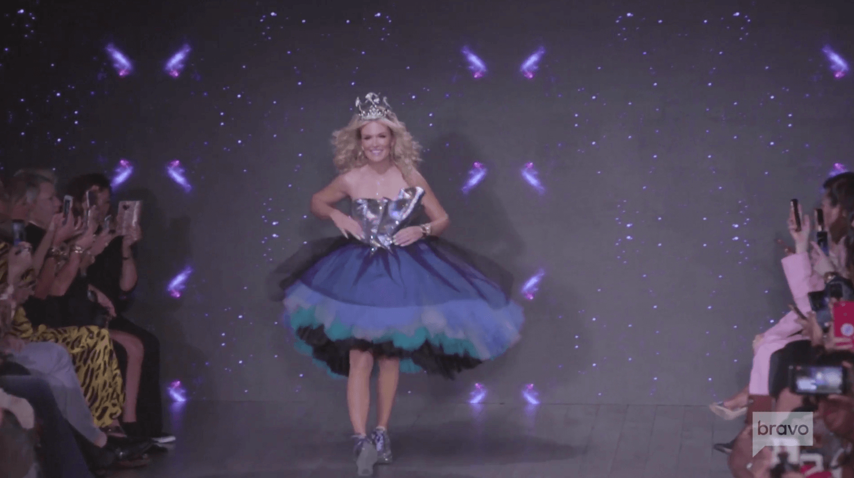 Dorinda Medley snidely comments that Tinsley loves a Disney-themed fashion show. She’ll probably get married in Cinderella’s castle and follow the yellow brick road straight to her prince. Can I just take a moment and ask what is Dorinda’s damage toward Tinsley? Tinsley may not the be the smartest or savviest Housewife, but she’s harmless!