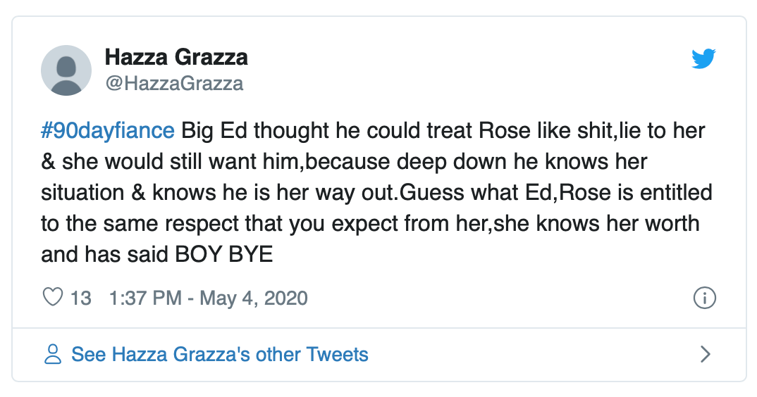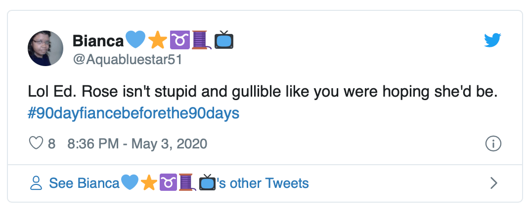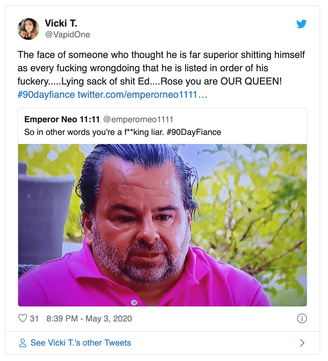 Rose Vega roasted Ed Brown on the most recent episode of 90 Day Fiance: Before the 90 Days — and fans of the popular series have been cheering her on.