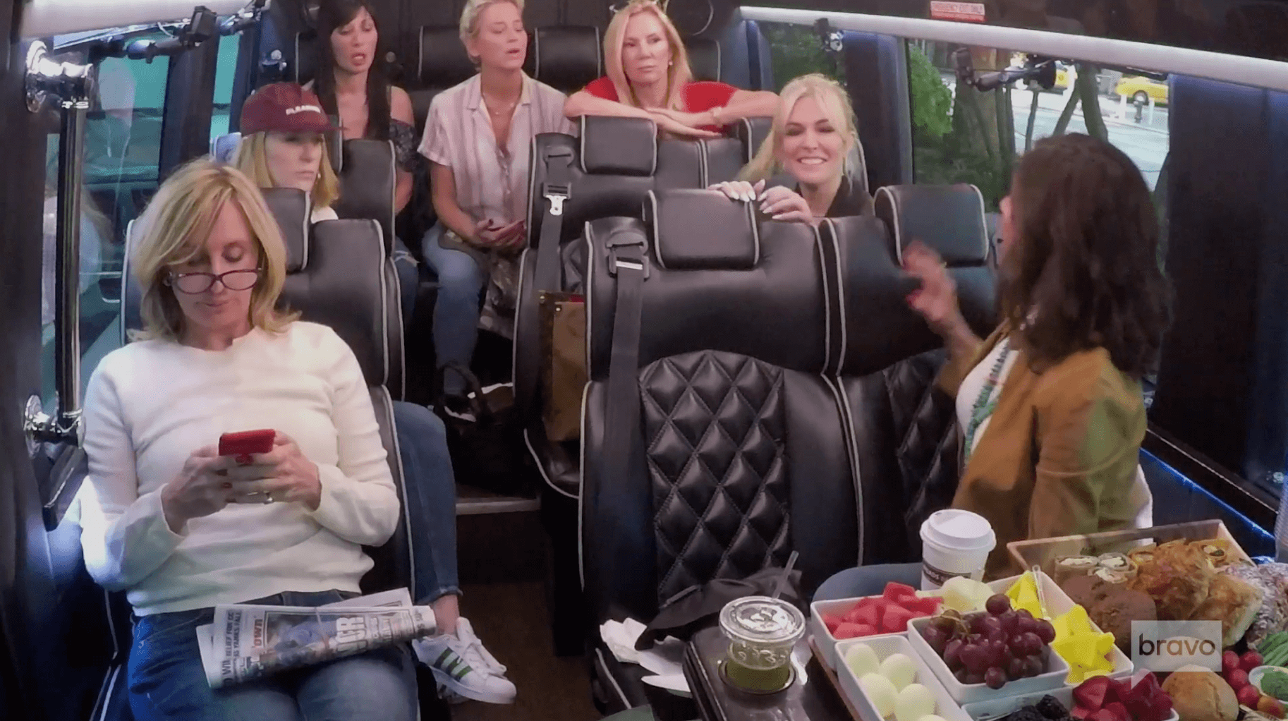 So a few days later, they all climb into a luxury van and head to the country. There will be a hayride and wine tasting. And since no one here is on the wagon any longer, it’s game on! But Sonja swears she’s not interested in getting soused. She just wants some wholesome apple cider.