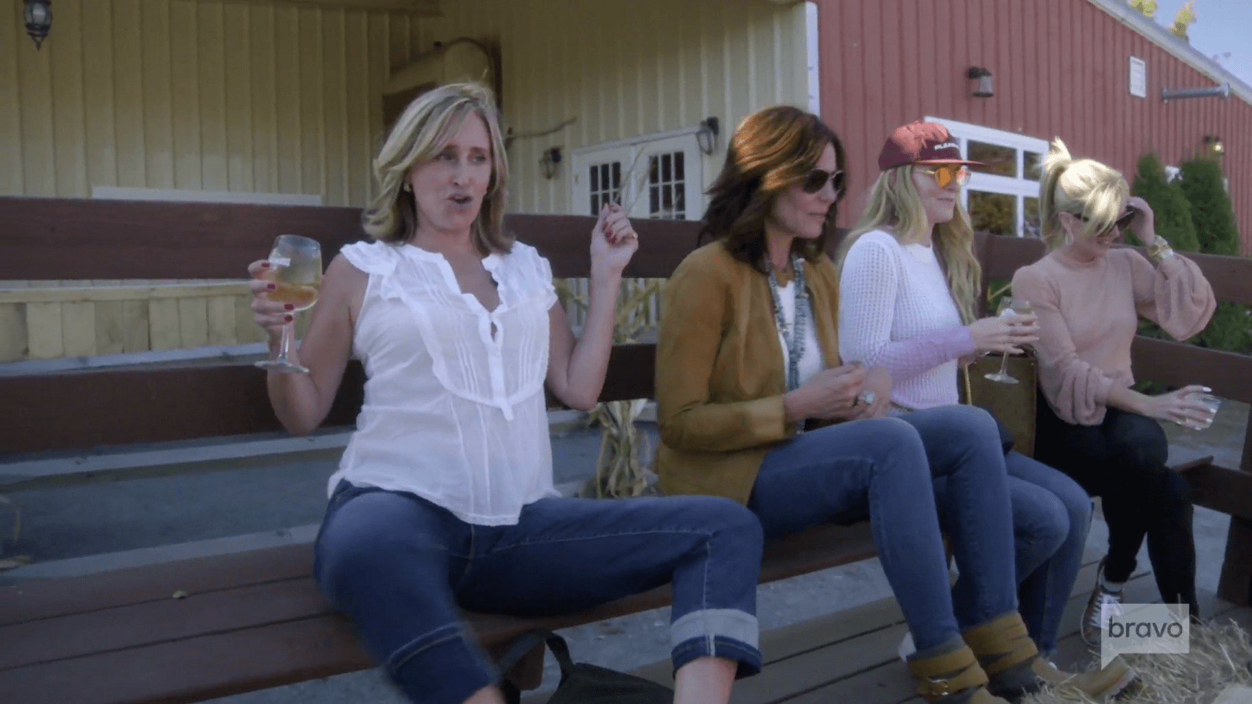 Afterward, the women go for a hayride, and Sonja Morgan is shit faced. The tractor putts along, and Lu announces they’re going into the corn maze. The ladies aren’t enthusiastic, but stick with the program.