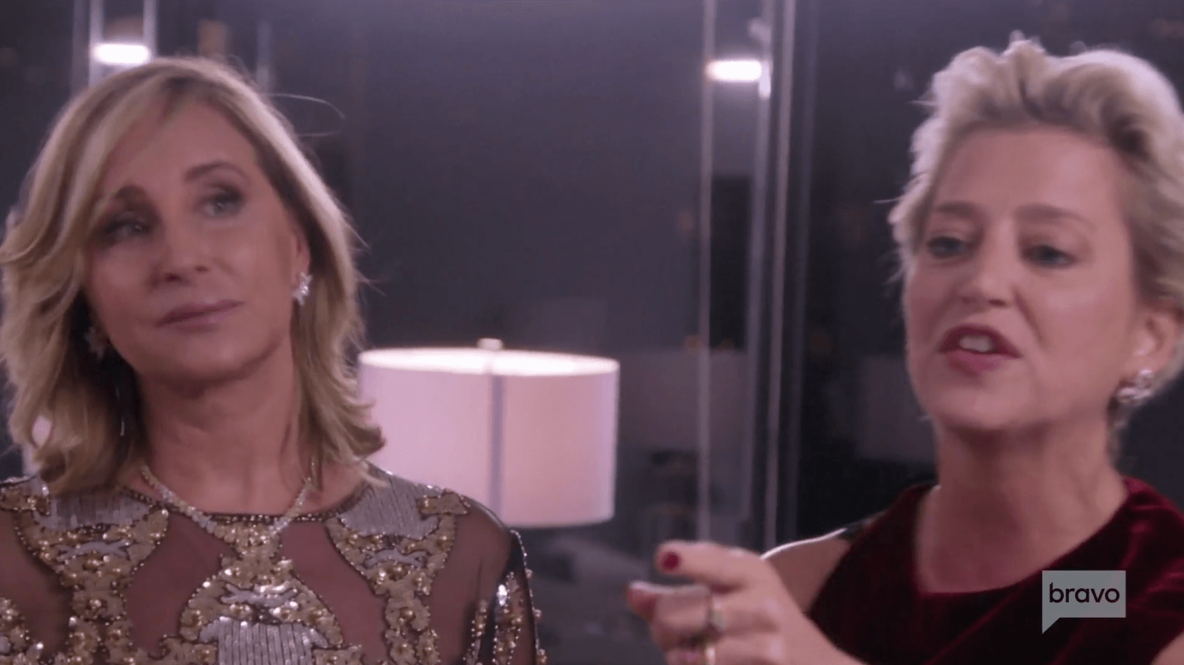 As Ramona’s friends stand by looking shocked and uncomfortable, Dorinda and Sonja leave. Elyse chases after them, then Ramona follows them out into the hallway. Dorinda starts crying, saying she needs Ramona’s support. Please don’t throw out things that happened two years ago.