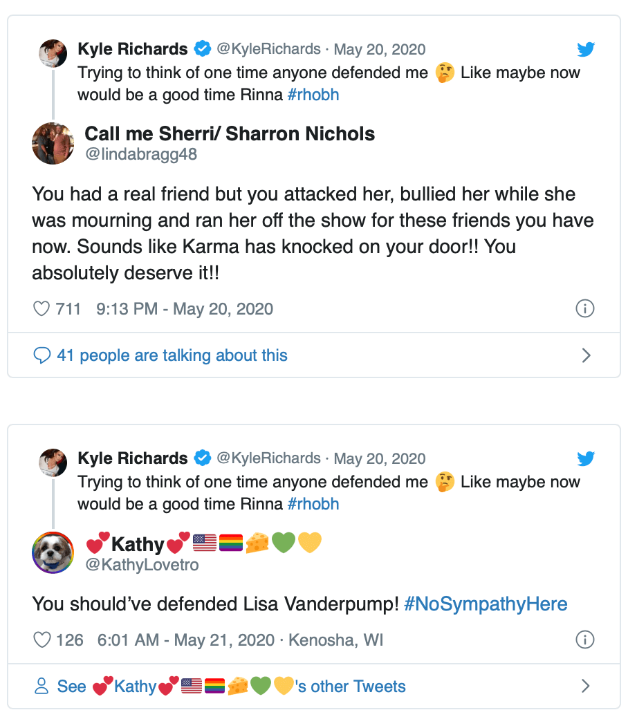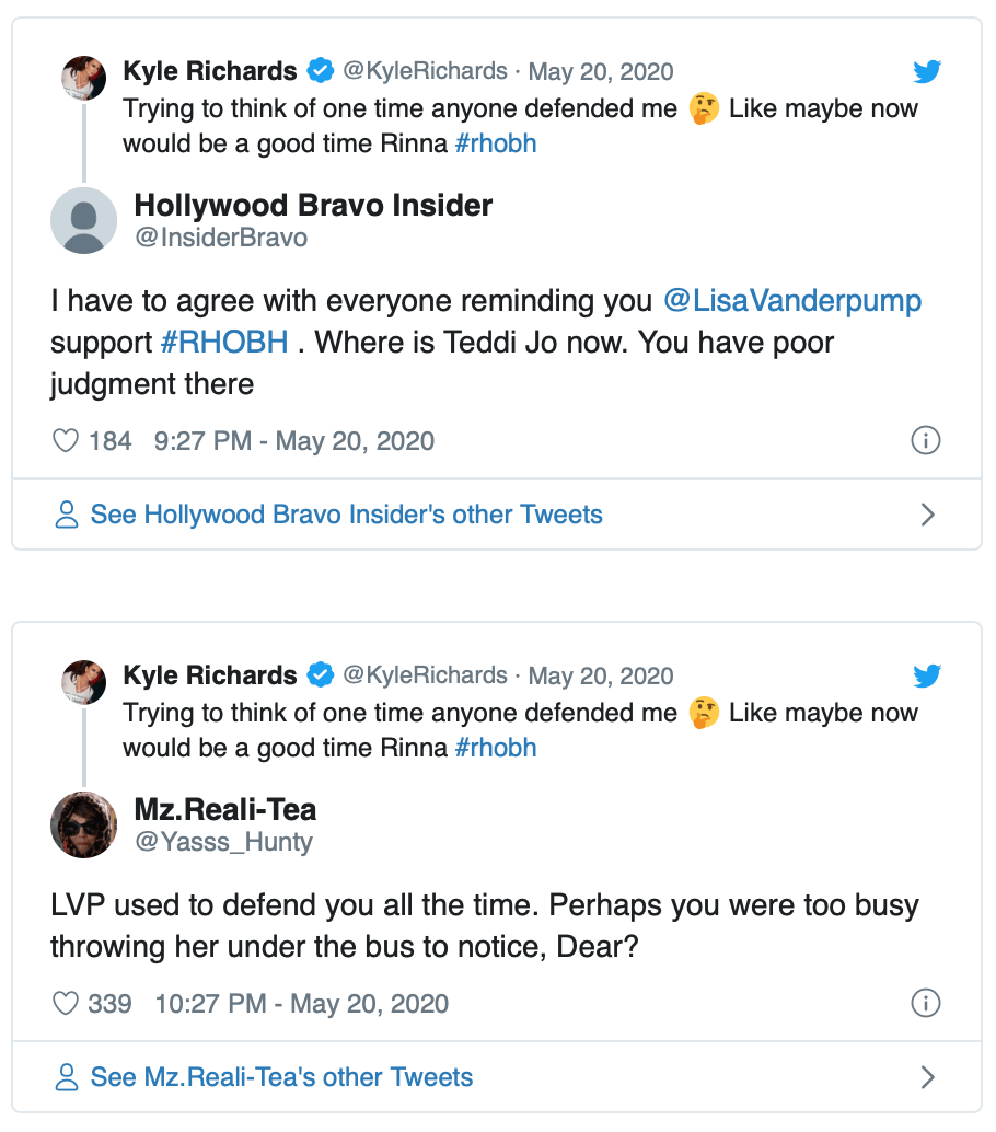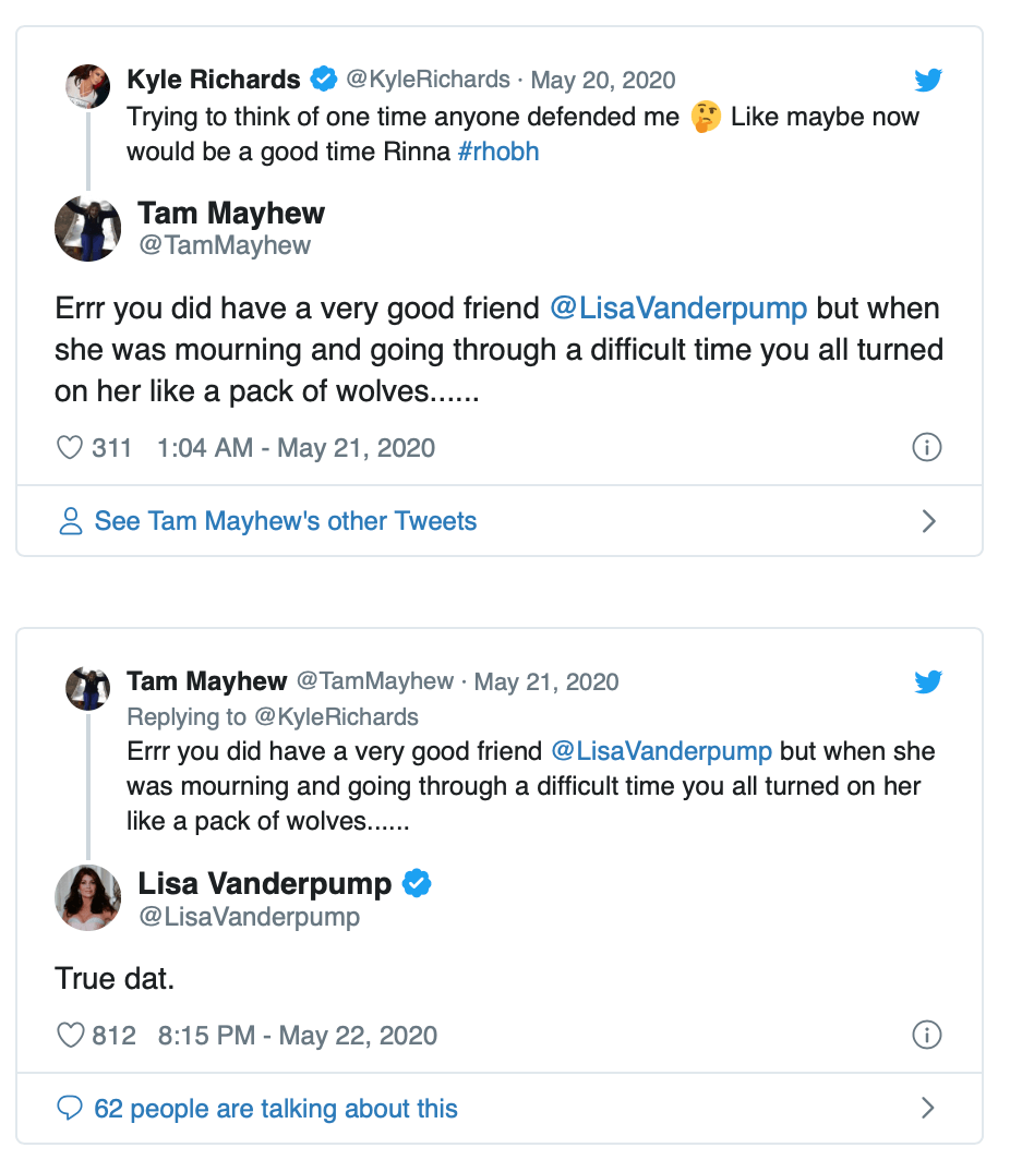 Lisa Vanderpump chimed in, after Kyle Richards shaded Rinna for not having her back.