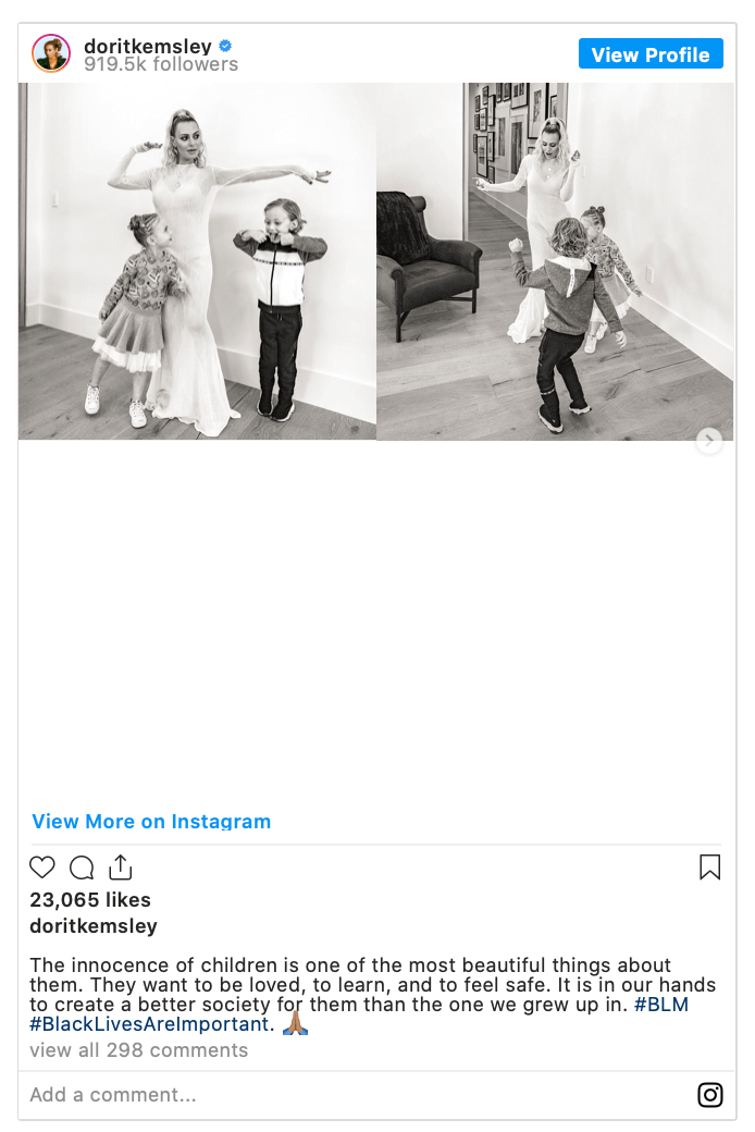 Dorit Kemsley,  raised her awareness factor over the weekend, hitting back with a series of black and white pics, smiling alongside her children, Jagger, 6, and Phoenix, 4. Dorit kept the look the same — but some playful snaps highlighted the sillier side of the reality star.  “The innocence of children is one of the most beautiful things about them,” Dorit captioned the post. “They want to be loved, to learn, and to feel safe. It is in our hands to create a better society for them than the one we grew up in. #BLM #BlackLivesAreImportant.”